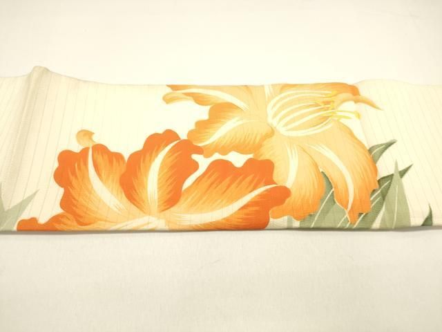 平和屋着物 夏物 アンティーク 大正ロマン 九寸名古屋帯 草花文 金銀糸 正絹 cm