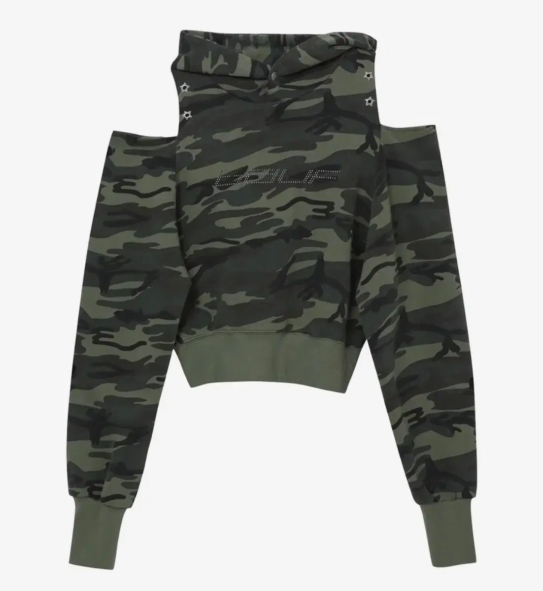 バウフ カットアウト オフショルダー クロップド フード カモフラージュ