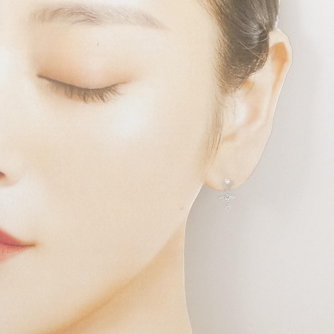 K14WG クロス ダイヤモンド ピアス 0.24CT