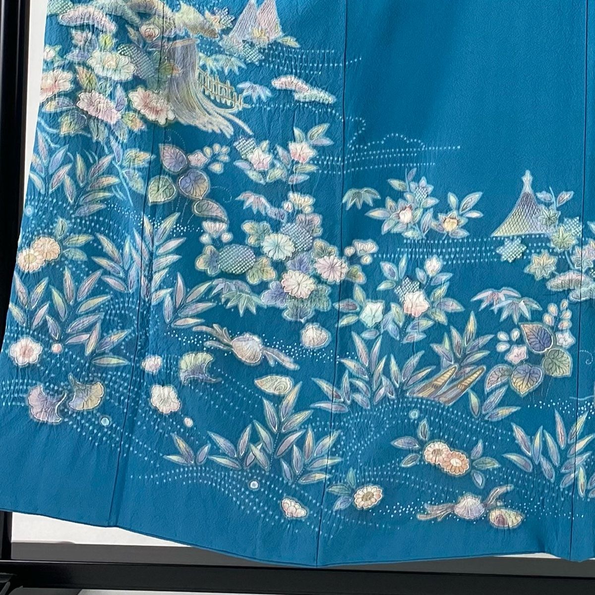 訪問着 身丈156 cm 裄丈61.5 S 袷 落款 草花 松竹梅 絞り 水色 正絹