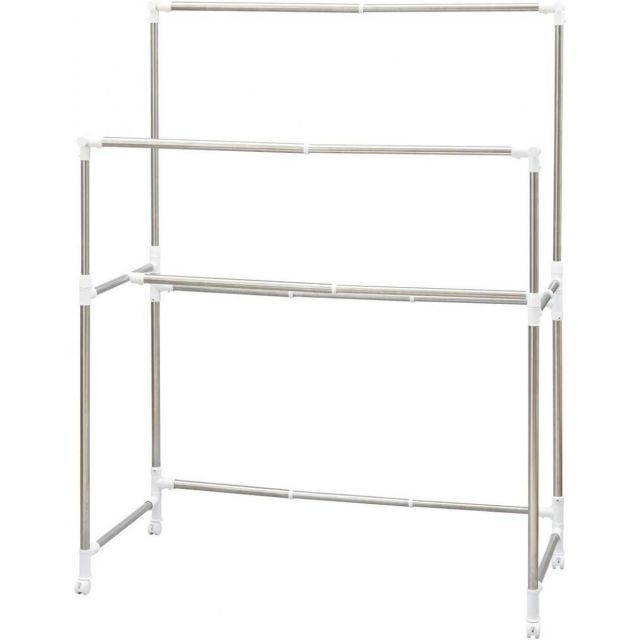 幅と高さのダブル伸縮ができる多機能物干しです。布団や衣類がまとめて干せます。折り畳んでスリムに収納できます。