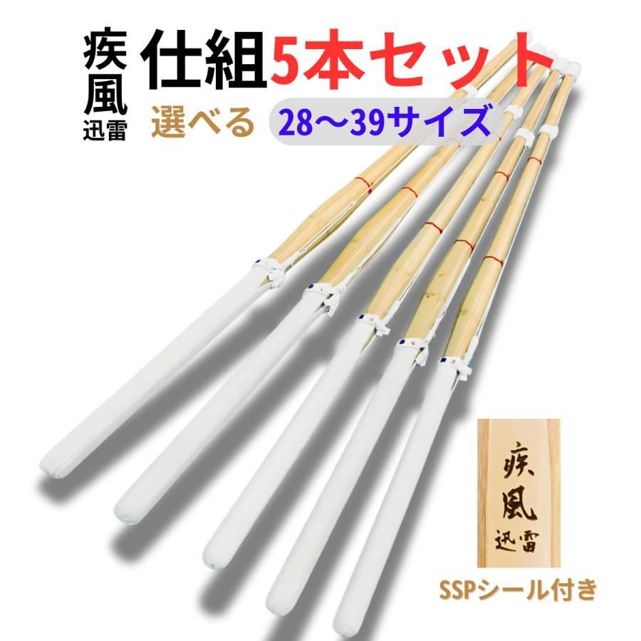 剣道 竹刀 5本 セット 疾風迅雷 焼 サイズ 選べる 黒白 吟風完成品 28〜 SSP付き 男子 女子 武道園