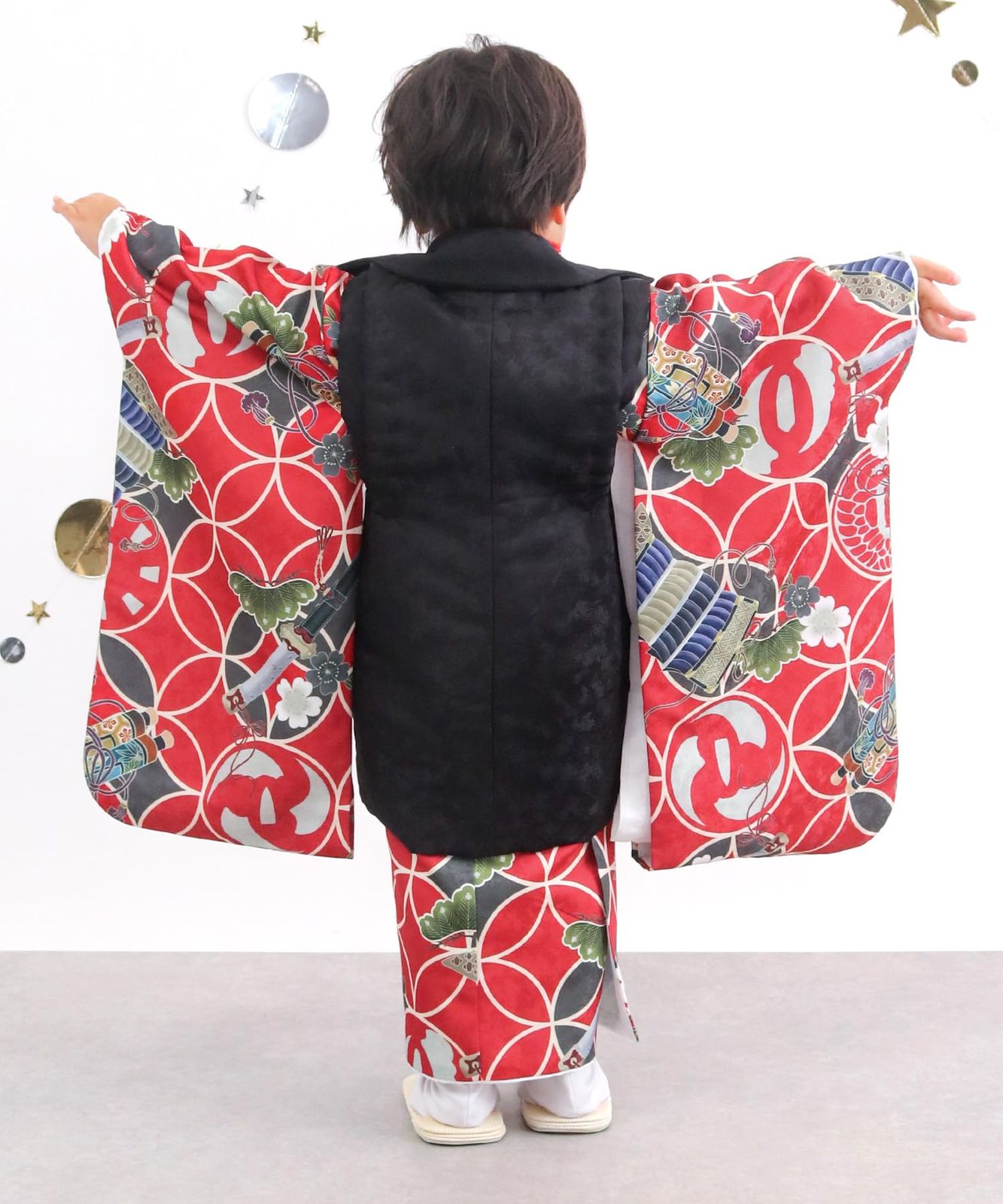 KYOETSU キョウエツ 七五三 3歳 着物 男の子 被布 フルセット しちごさん 15.深紅七宝太刀 90-100 cm