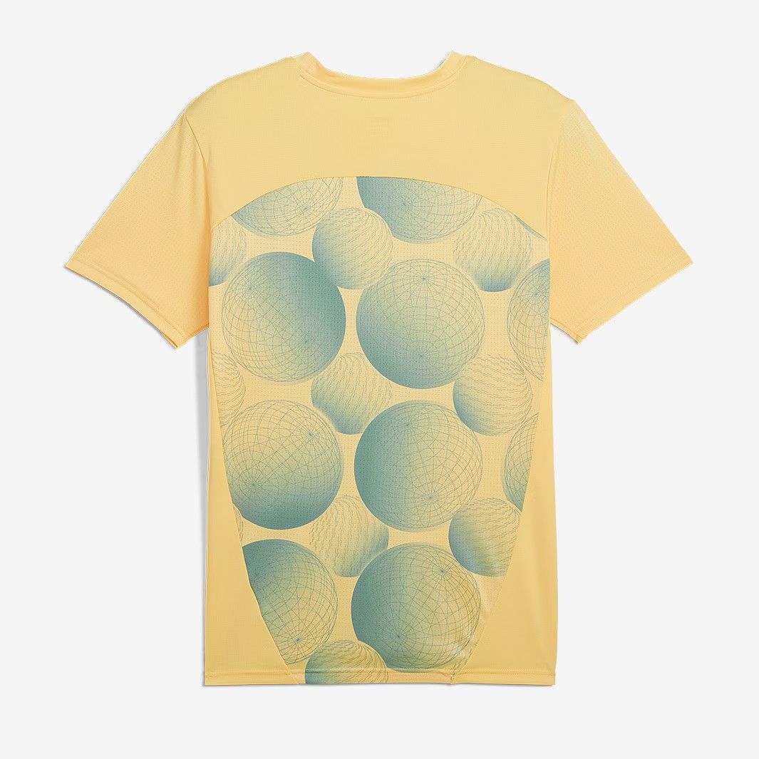 プーマ公式のプレマッチシャツです。鮮やかなカラーが目を引くデザインで、選手のウォームアップ時などに着用されます。吸湿性を高めるdryCELLテクノロジーと通気性に優れたメッシュパネルが、体を涼しくドライに保ちます。本体にはリサイクルポリエステルが一部使用されています。