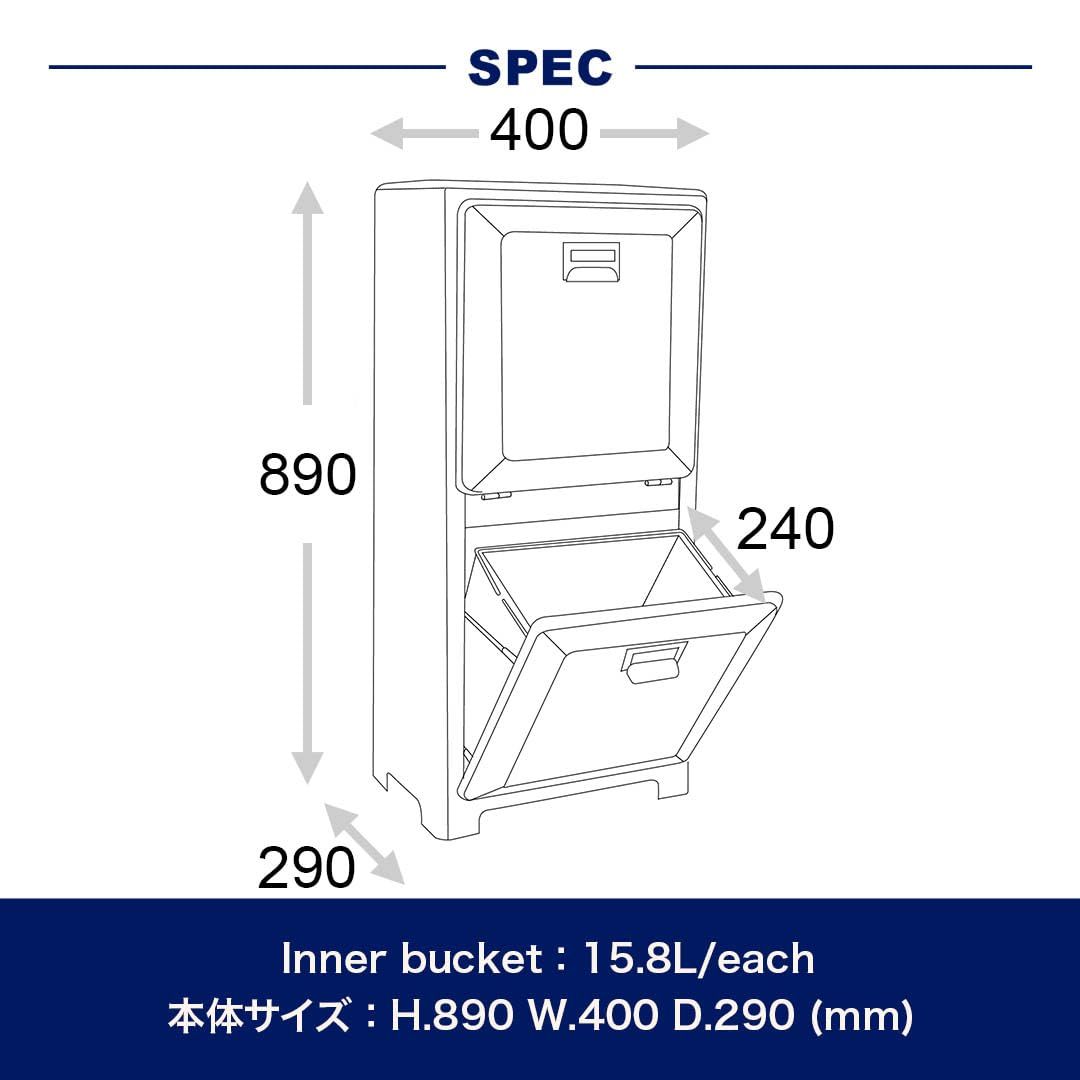 サイズ : 高さ890×幅400×奥行290mm、インナーバケツ : 15.8L/個