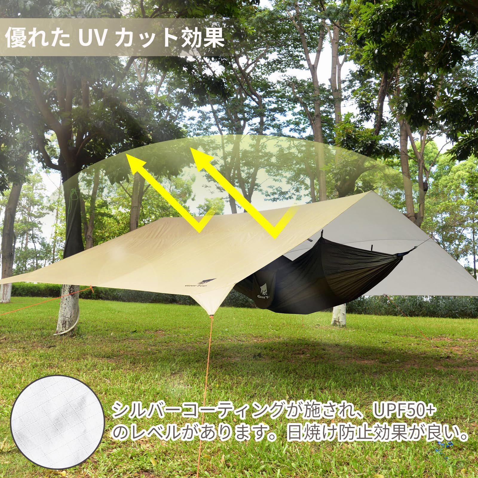 Geer Top 防水タープ キャンプ タープ 3 m 5 25 大型 UVカット UPF 50 耐水3000 mm 耐引裂 日よけ 紫外線カット 遮光 遮熱 カーサイドタープ アウトドア レジャー ピクニック 公園 観戦 車中泊 ビーチ カーキ
