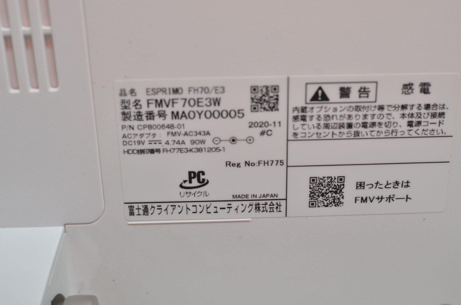 日本製 新品良品 一体型パソコン 富士通 FH70/E3