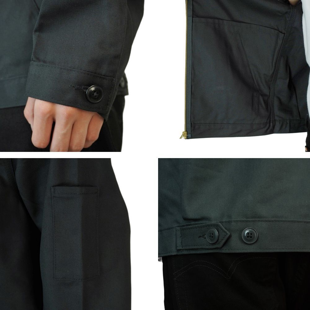 Dickiesらしいタフな雰囲気を持つ定番ワークジャケット。ややゆとりを持たせたボックスシルエットで、動きやすさと防寒性を両立。表地はポリエステル65%・コットン35%のツイル生地を採用。フロントはジップ仕様、背面裾に調節ボタン付き。作業にもストリートにも馴染む万能ジャケットです。