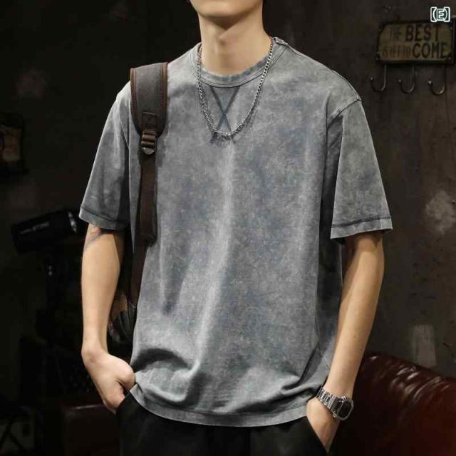 4 XL 100 メンズ 男性用 ファッション オシャレ シンプル 大人 かっこいい ストリート ヒップホップ HipHop アメリカン ヘビーウェイト 白 半袖 T シャツ ゆったり 大きいサイズ 夏 コットン ウォッシュ レトロ シャ