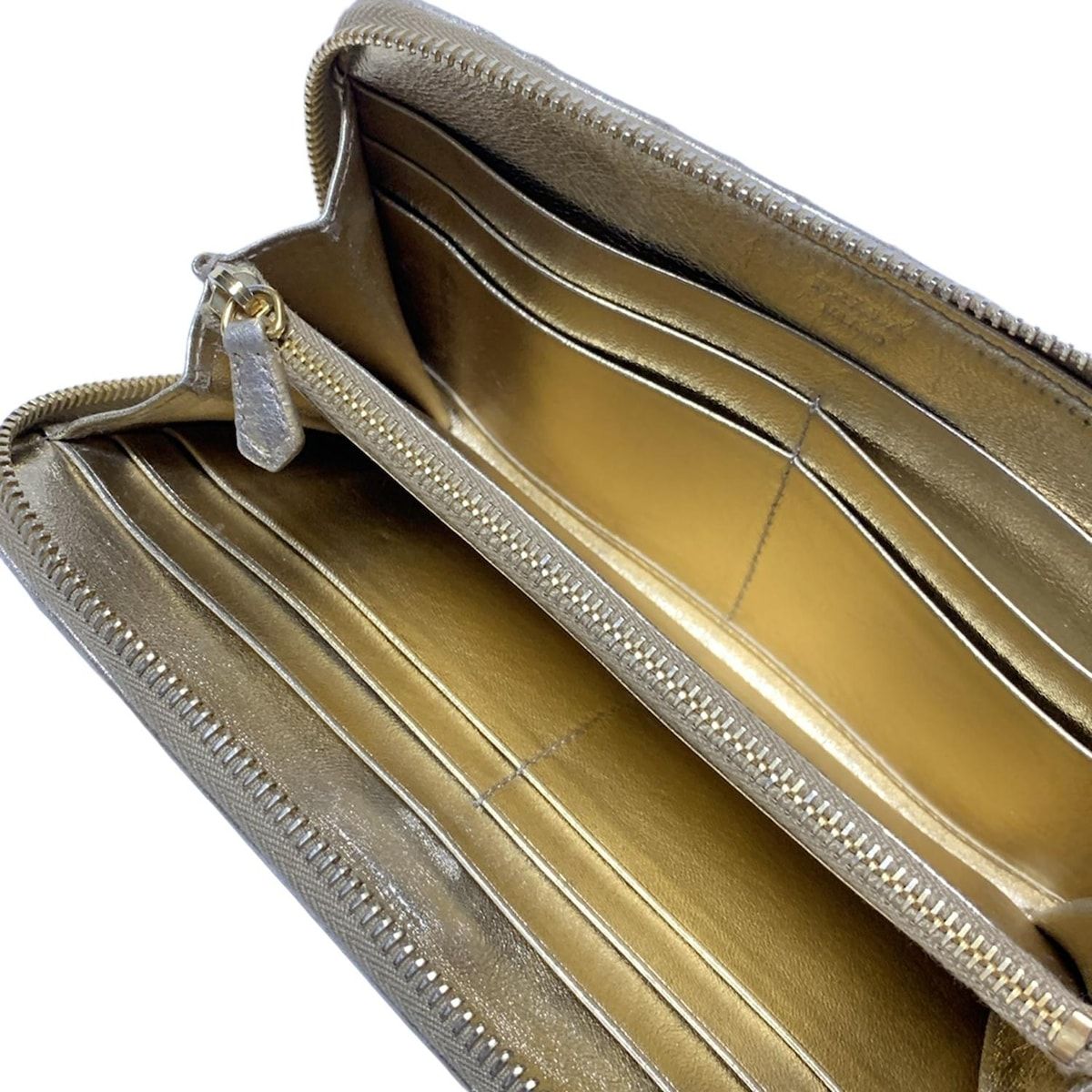 PRADA プラダ 長財布 ギャザーウォレット シルバー×ゴールド ラウンドファスナー レザー