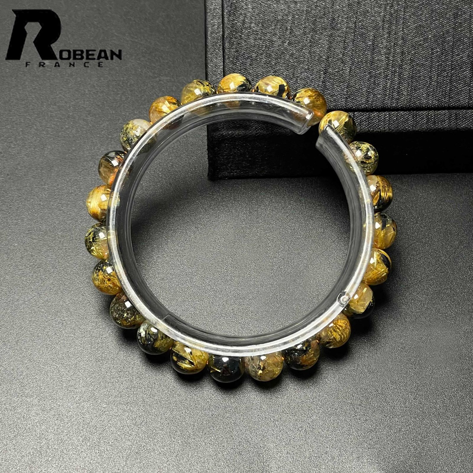 10 OFFクーポン 夢色 EU製 定価10万円 ROBEAN 太陽花タイチンルチル 黄金針水晶 金運 開運 ゴールド ブレスレット パワーストーン プレゼント1 8.3-8.7 mm