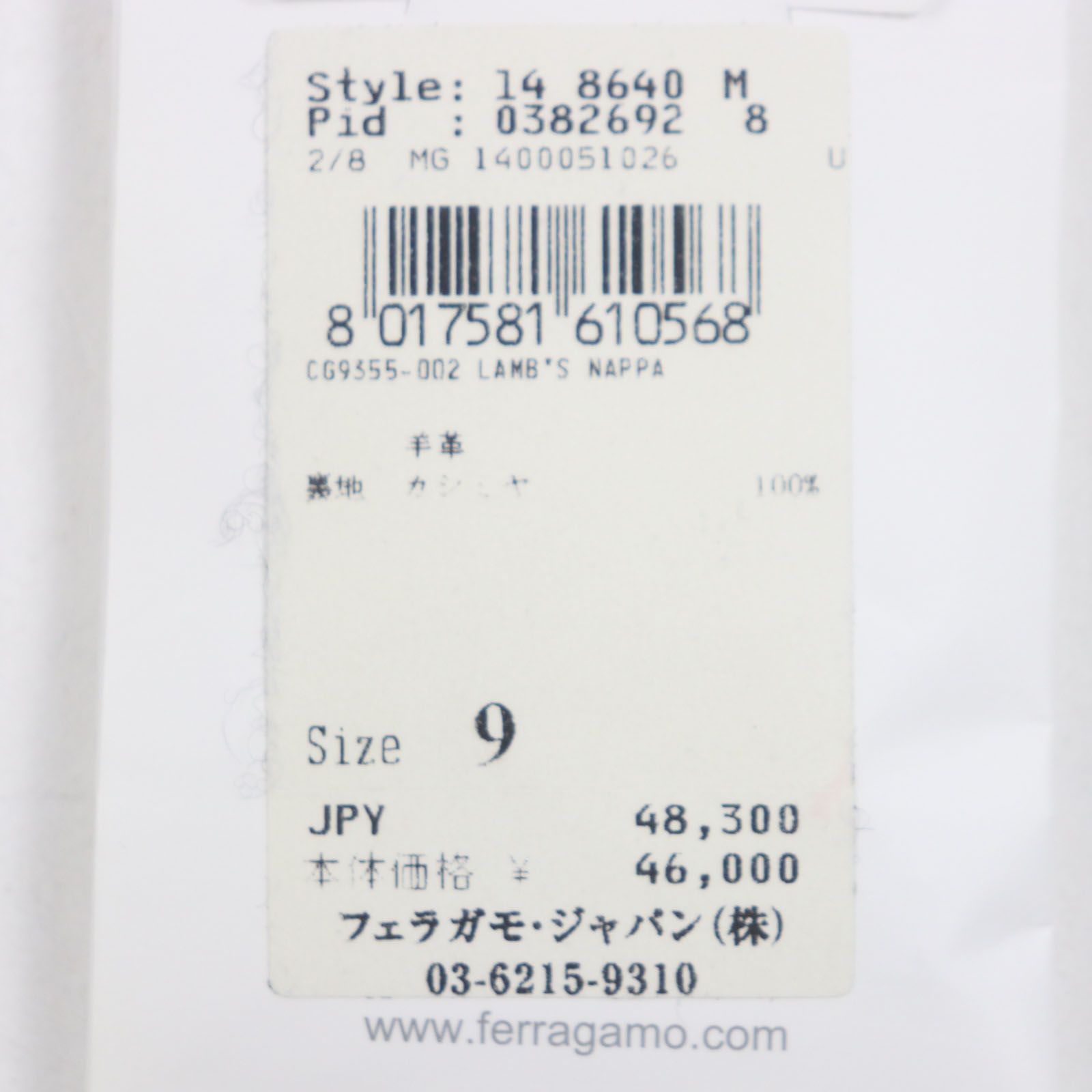 Salvatore Ferragamo サルヴァトーレフェラガモ 羊革 ラムレザー 裏地カシミヤ ロゴ刻印入り グローブ 手袋 ブラック 9 き イタリア製 メンズ