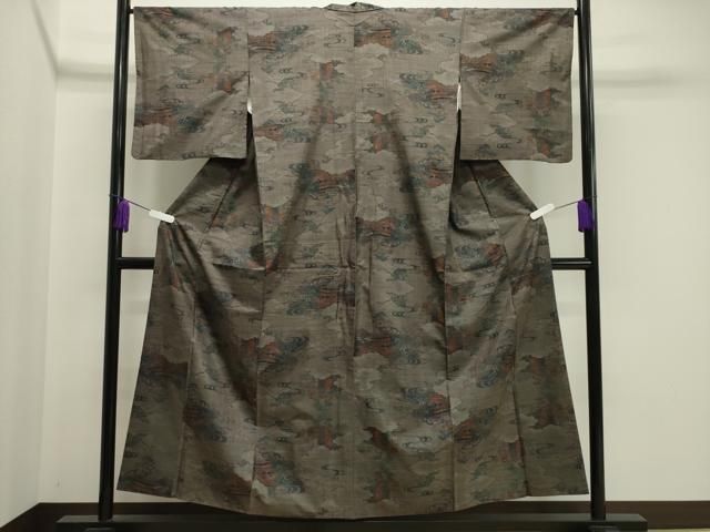 平和屋着物 本場大島紬 9マルキ 雲重ね風景文 正絹 gh