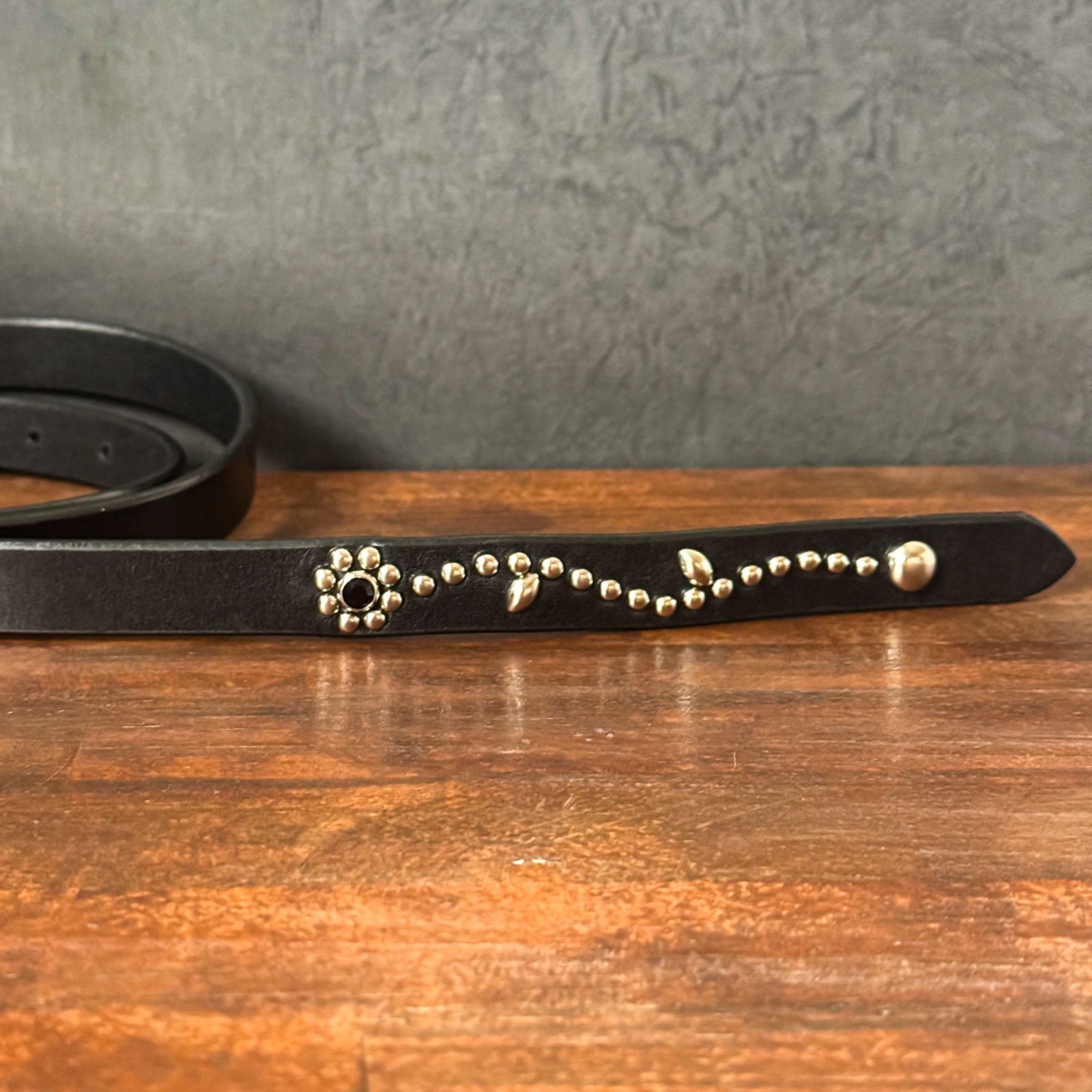▪︎HTC.RRL.CALEE等にも使用されるスタンダード社の高級スタッズとナローベルト用にタンナーより取り寄せた厚手のカウレザーを使用して製作したハンドメイドのベルトになります。
