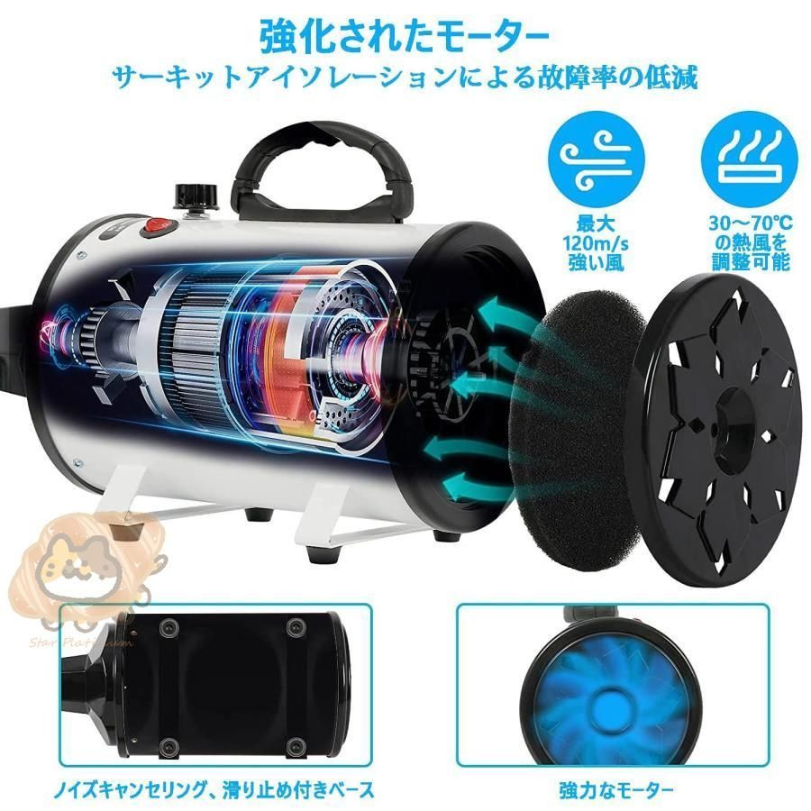 ペットドライヤー 2800 W 犬用ドライヤー 100 V ペットブロワ 大風量 犬用乾燥機 無段階風速制御 30-70℃温度可調整 犬 ドライヤー 4種ノズル