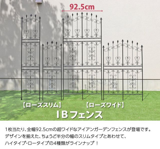 ガーデンガーデン お庭をエレガントに彩る IBフェンス ローズスリム ロータイプ 幅48×高さ155 cm セット ブラック アイアントレリス IBF- -4 P