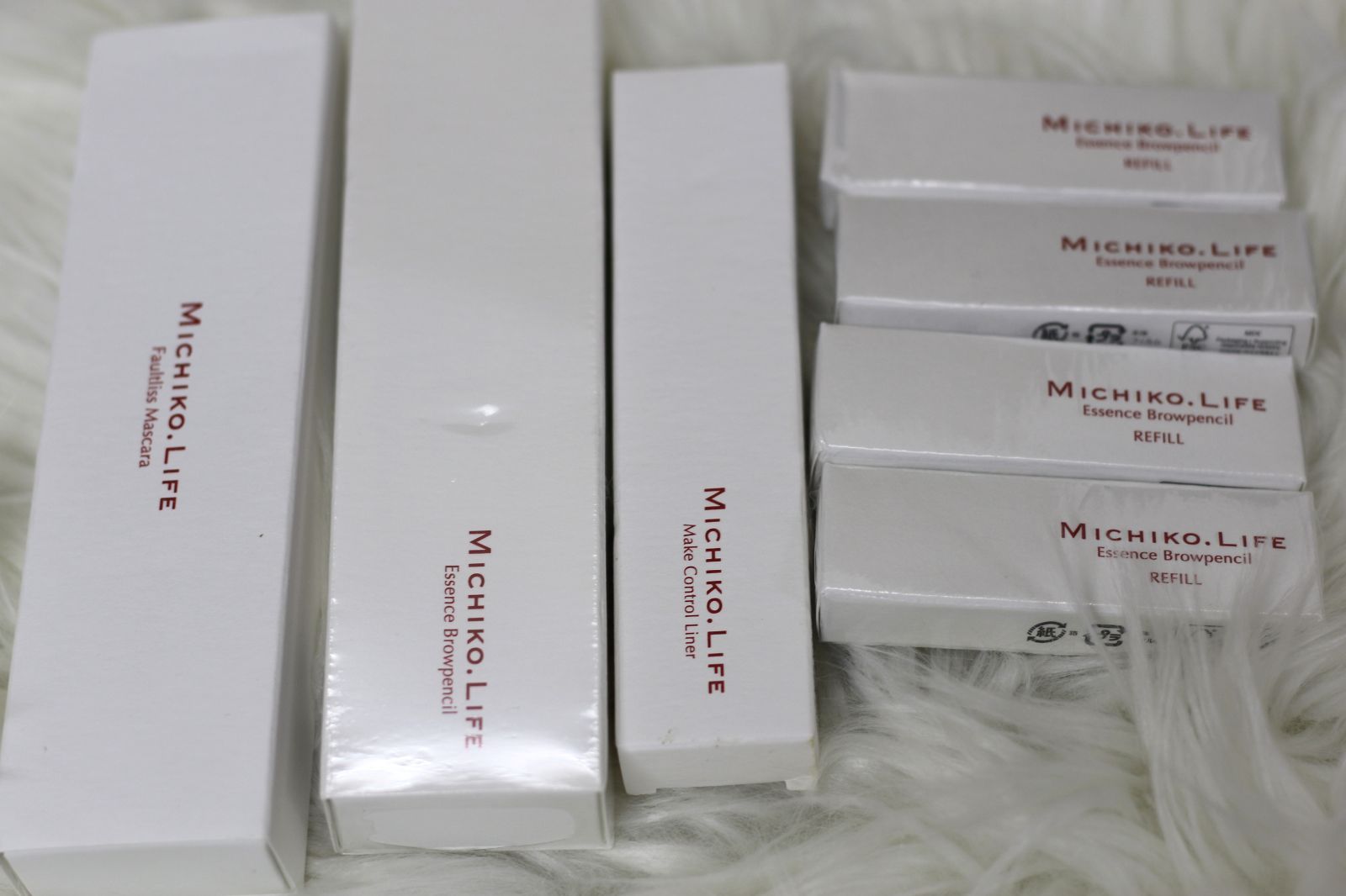【MICHIKO.LIFE 未開封エッセンスブロウペンシルナチュラルグレー×1箱+未開封リフィル(ナチュラルブラウン×2箱+ナチュラルグレー×2箱) 未開封フォルトリスマスカラ7g×1箱 未開封メイクコントロールライナーブラウン×1箱 セット】