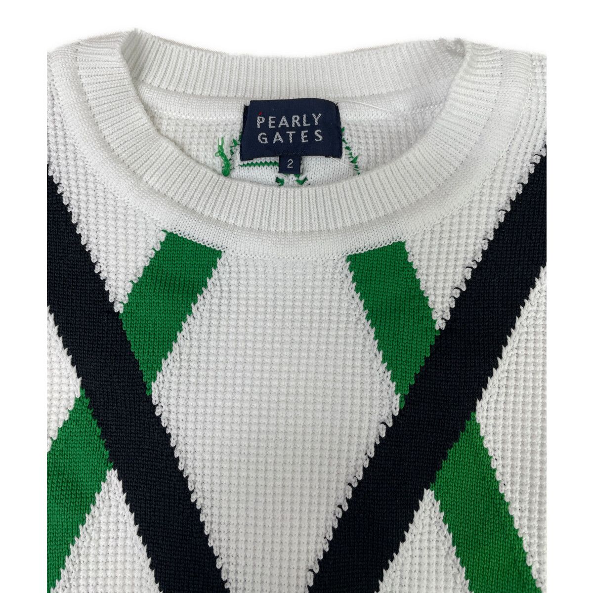 レディース パーリーゲイツ PEARLY GATES ニット 2 L 白 ホワイト ビッグアーガイル柄
