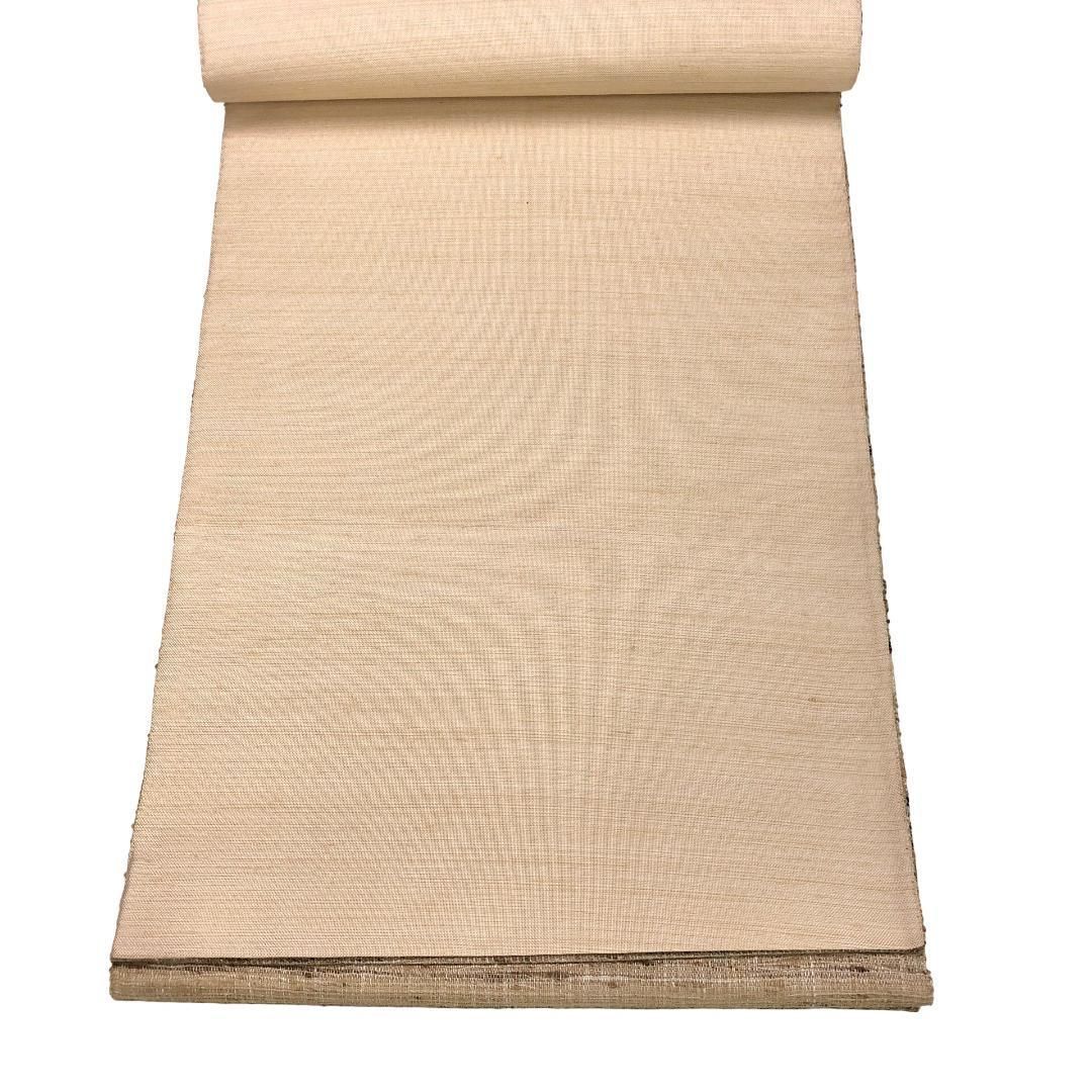 袋帯 西陣 聚楽 聚蚕紬 横縞に曲線模様 麦藁色 O-5499