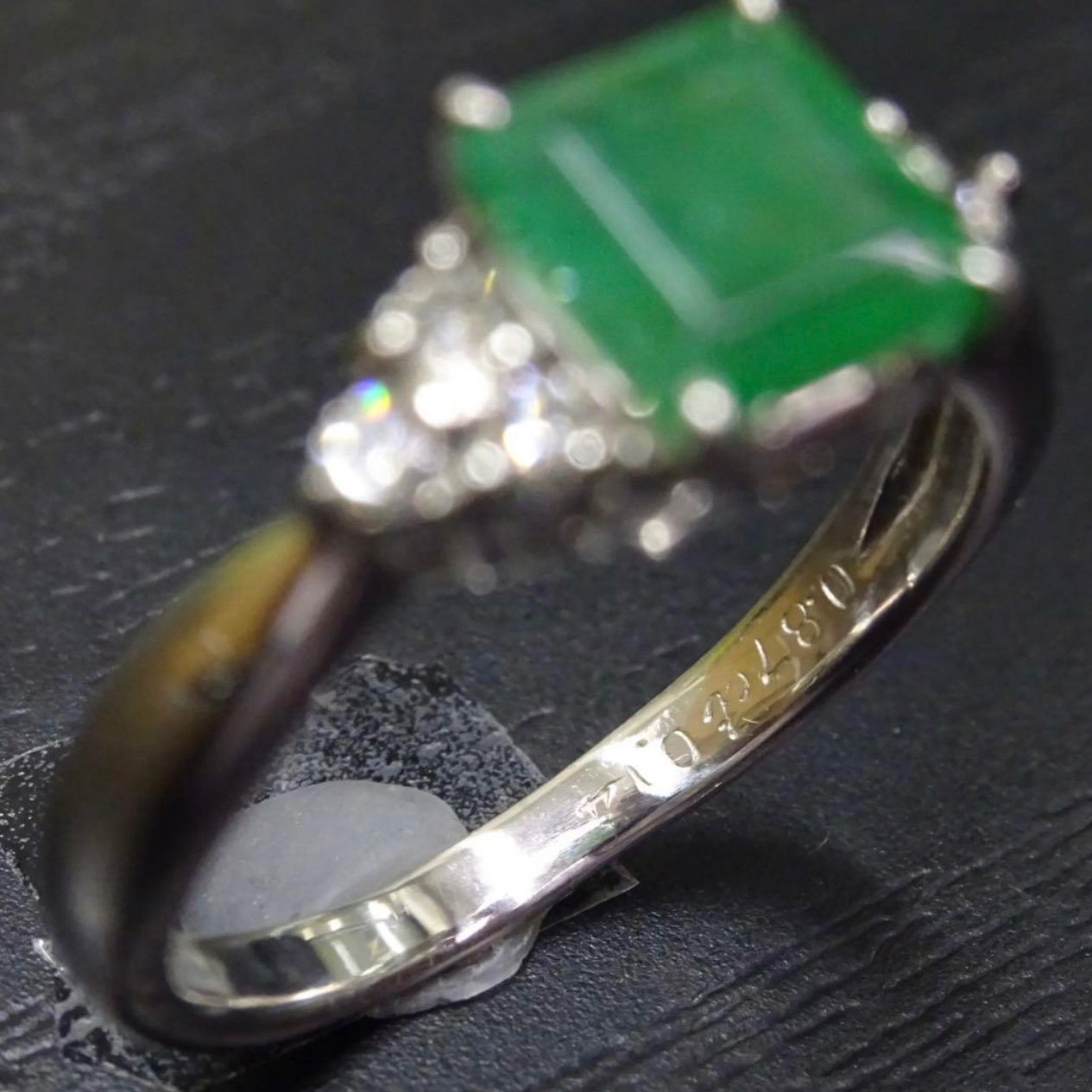 プラチナ pt 900 天然エメラルド0.87 ct 天然ダイヤモンド0.14 デザイン リング 指輪 約12号弱 総重量約5.09 g ジュエリー 宝石 貴金属 ジュエリーショッププライス Shops