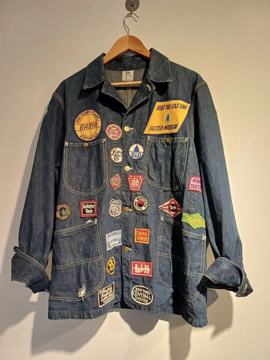 リーのデニム合唱ワークコートのサイズは40です。ユニークなワークウェアスタイルで、パッチのディテールが特徴の商品です。数か所にダメージがありますので、画像をご確認ください。