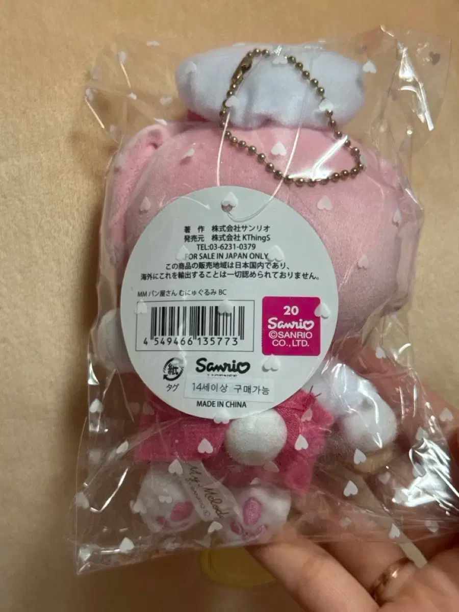 これはムンユーベーカリーのマイメロディのマスコットドールです。ビニールラップが破れていない全く新しい商品です。マイメロディがかわいくて、手にピアノのパンが入っています