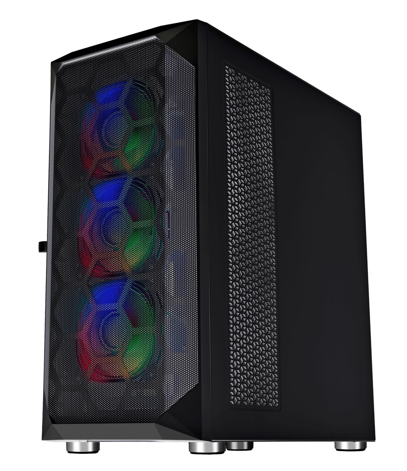 スタイリッシュなゲーミングデザインと、機能性を兼ね備えたE-ATX/ATX/m-ATX/ITX対応のミドルタワーケース。 メッシュメタルフロントパネル エアフロー、側面には高透過率の強化ガラスパネルを採用し、内部のRGBライティングが映えるデザインに仕上がっています。サイドから吸気し、リア、フロント、トップで排熱することで、PC内部を効率よく冷却します。 ケーブルマネジメントスペースも広く、初心者から自作PC上級者まで組み立てやすい設計。 コンパクトながら、最大410mmのグラフィックボードや360mmの水冷ラジエーターにも対応。ゲーミングPCの入門ケースとしても最適です。