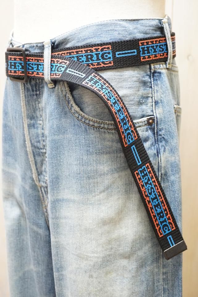 ★HYSTERIC GLAMOUR ヒステリックグラマーのアイコニックなストライプロゴデザインが印象的な総柄テープベルト★
