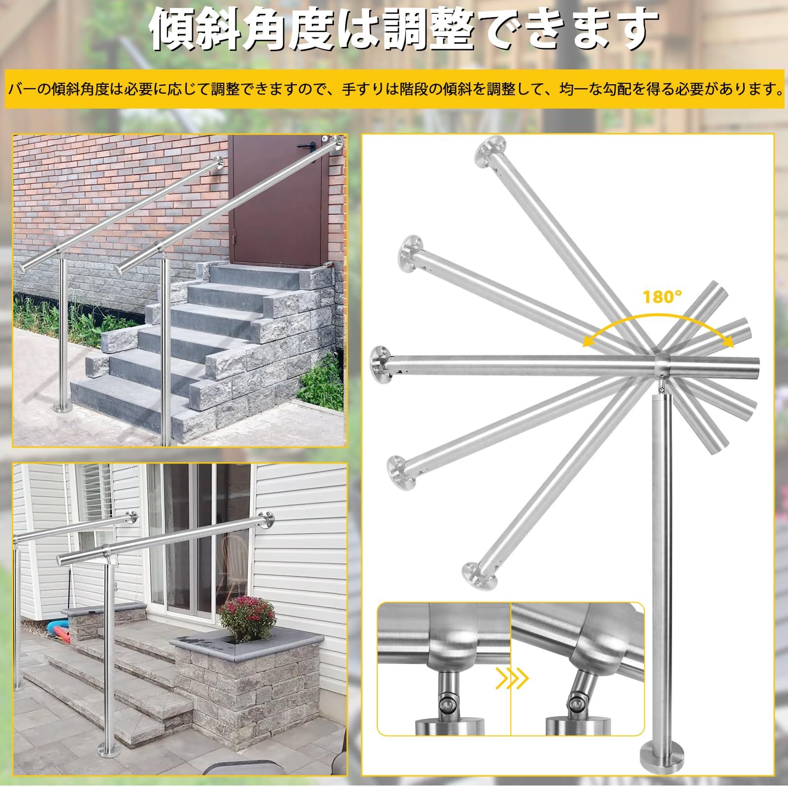 304ステンレス鋼 階段手すり DIY 入口角度調整 屋内 屋外使用 取り付け簡単 滑らかなつや消し表面 高さ90 cm 直径42 mm 厚さ1.2 長さ120 シルバー