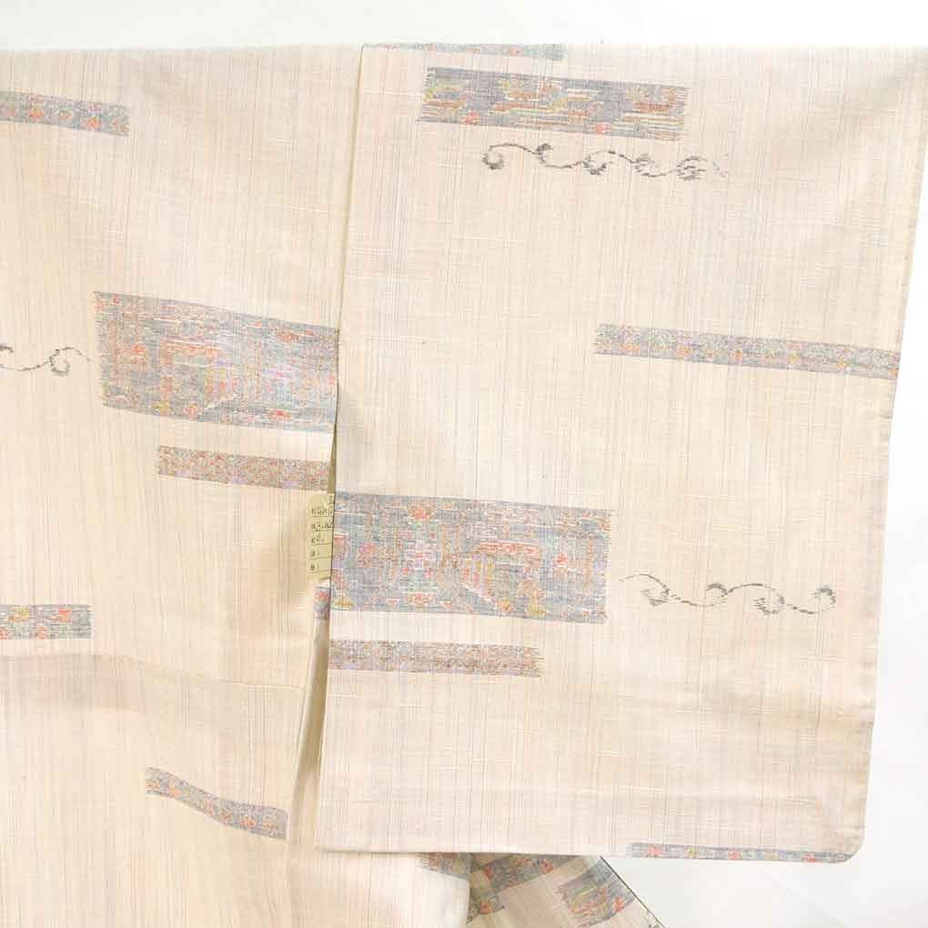 紬 身丈156 cm 裄62.5 前幅23 後幅28 袖丈49 袖幅32 レディース 単衣 横段柄 裄Sサイズ 初夏 初秋用 正絹 シルク ベージュ リメイク リユース リサイクル 呉服のきくや