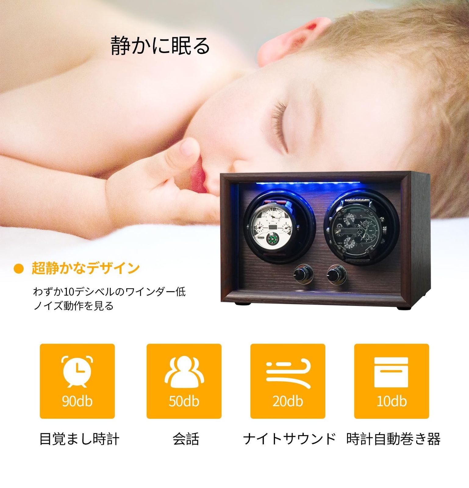 ハイエンドの人気デザイン : 静音設計、防磁設計、動作音が非常に静かなので、寝室や書斎に置くこともおすすめします。2本腕時計収納、内蔵のLED照明、暗くでも素早く正確に腕時計を入手できます、落ち着いた雰囲気を醸し出します。インターロック機能付き、扉を開いた際ホルダーの回転を自動停止。