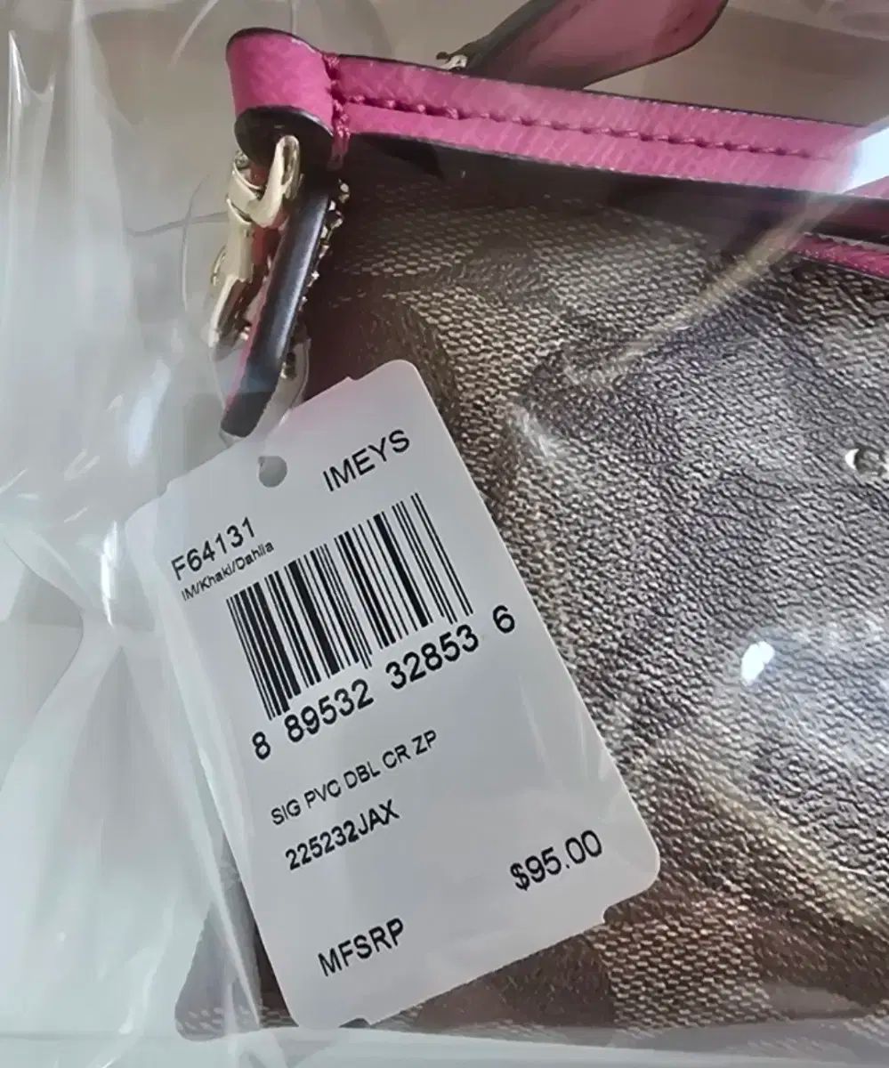 これはツーピースのCoach (コーチ) ハンドバッグクラッチです。シグネチャーパターンとホットピンクの配カラー洗練されたデザインです。持ってリーサイズです。