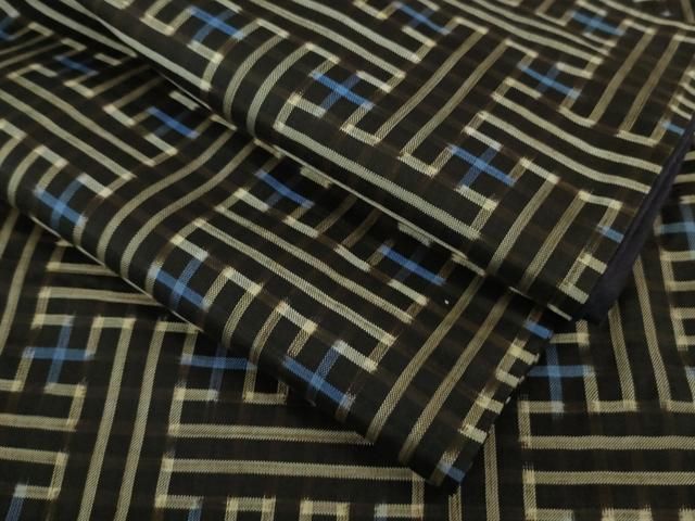 車輪梅と泥で染めた黒い地糸と絣糸を使用し、