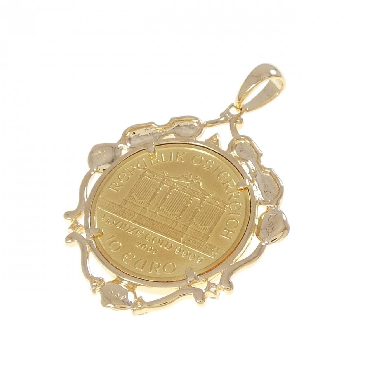 750 YG 枠 ダイヤモンド コイン ペンダント 0.04 CT