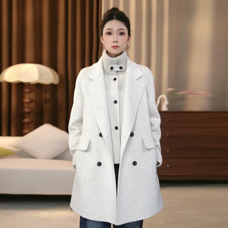 羊毛2点セット レディース シンプル中長丈 羊毛コート フォーマル&カジュアル 丸襟デザイン S〜Mサイズ対応