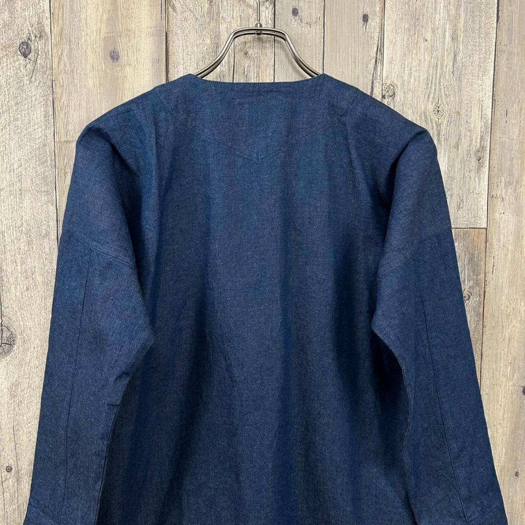 ノーカラー 鯉口 スリーブ 長袖 デニム シャツ