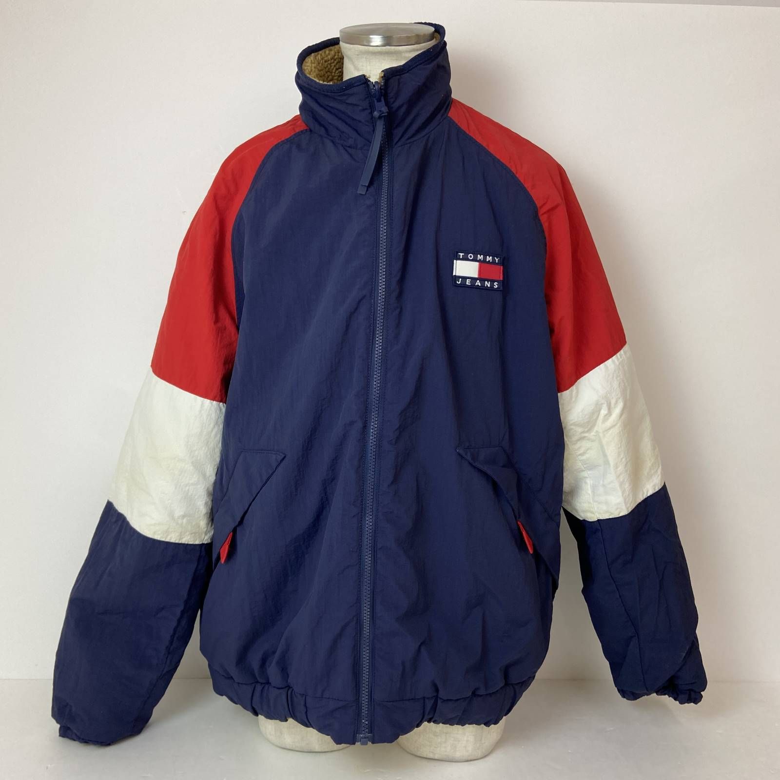 04 w 5122 TOMMY JEANS トミージーンズ トミーヒルフィガー リバーシブルジャケット フリースジャケット ナイロンジャケット Lサイズ キャメル トリコロール