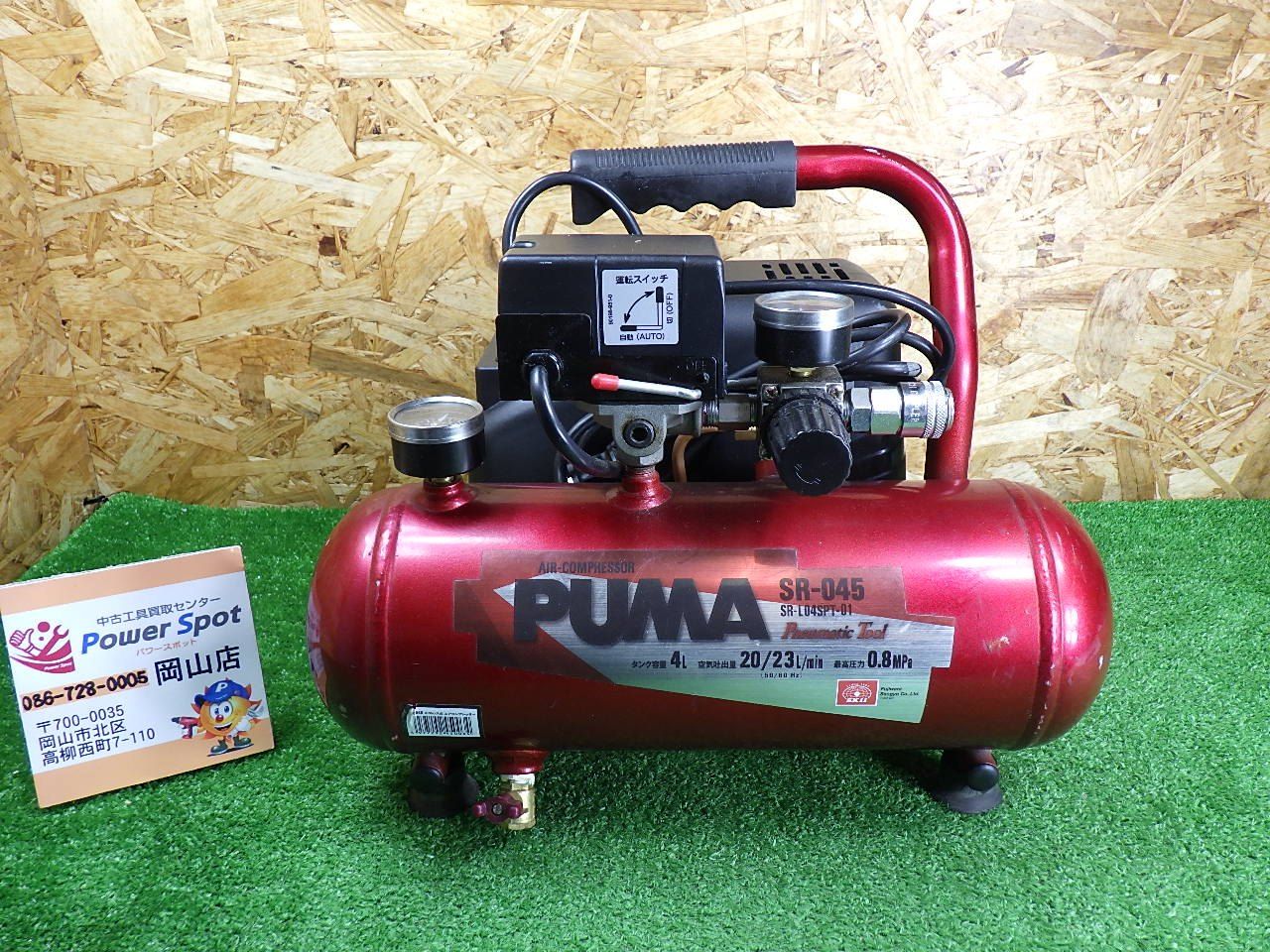 DIYにも PUMA エアーコンプレッサー SR 045 常圧モデル コード式 品