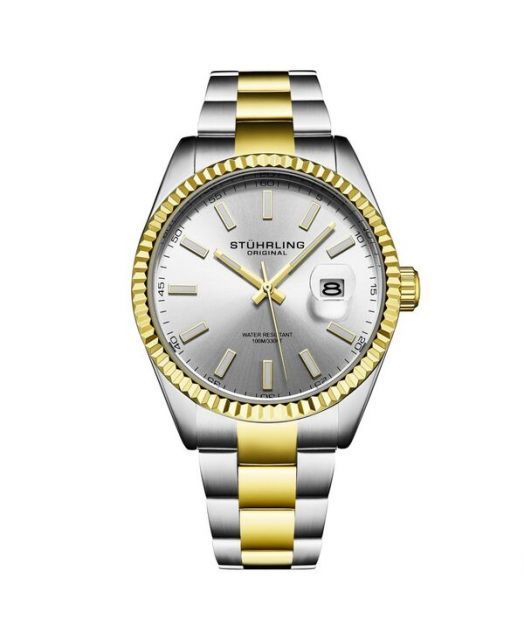 ストゥーリング レディース 腕時計 Vanguard 4069 Men s Quartz Watch 42 mm Silver Dial Two-Tone Bracelet Fluted Bezel Date 100 M Water R