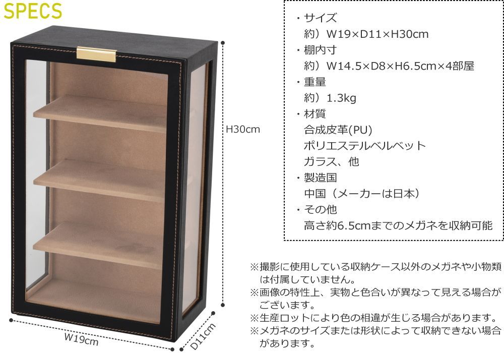 正面と両側面はガラス張りなので、お気に入りのメガネを眺めてお楽しみいただけます。