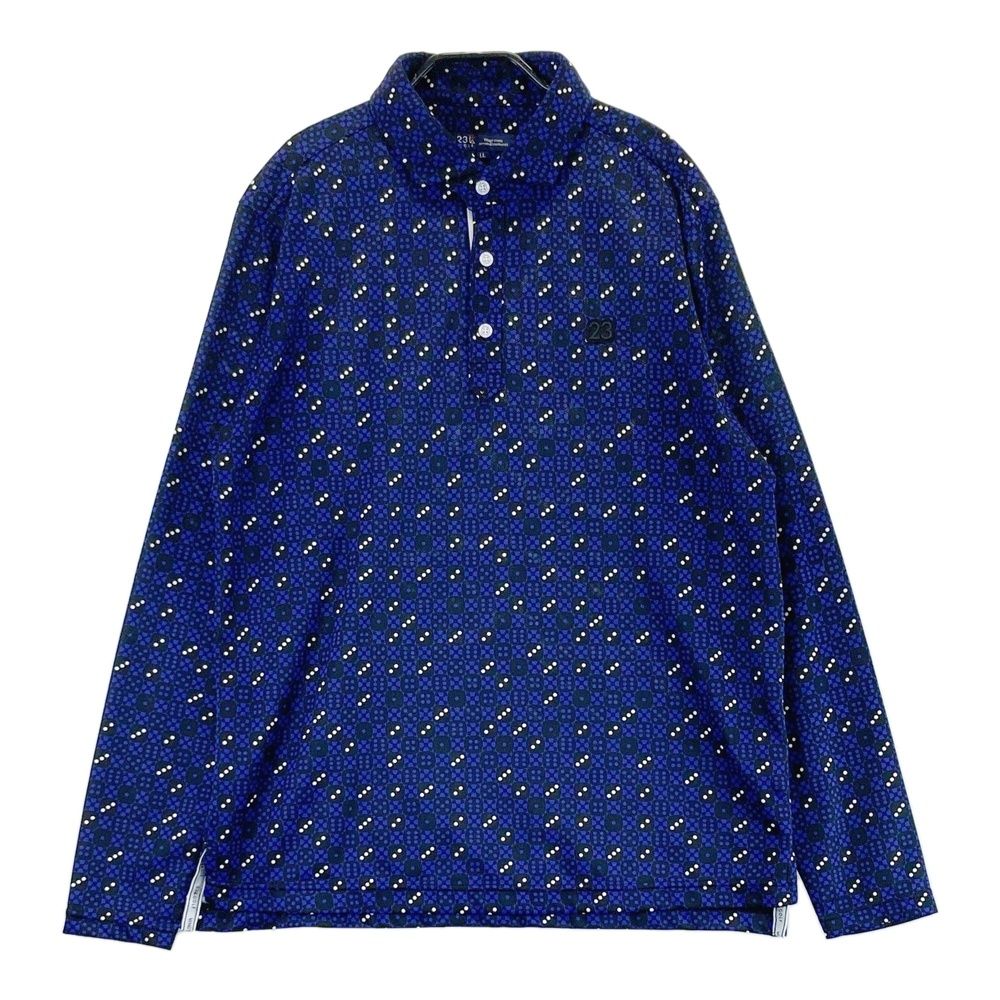 サイズ LL 23区GOLF ニジュウサンクゴルフ 長袖ポロシャツ 総柄 ネイビー系 ゴルフウェア メンズ ストスト