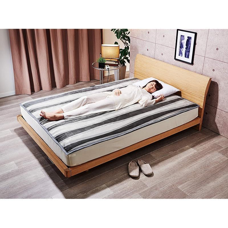 〇質感、デザイン、機能を兼ね備えた電気毛布。〇滑らかでしっとりとした肌触りが気持ちいい。毛布がインテリアに、芸術的なストライプ柄の描写はオリジナルデザイン。抗菌防臭加工・きさ。〇頭寒足熱配線で足元はしっかり、胸元はソフトに身体を暖めます。〇切り忘れても安心、12時間自働OFFタイマー付き。〇操作しやすいスライド式温度調節。(暗い部屋でも見やすいバックライト付き) 〇急に冷え込んでも快適、室温センサー内臓。(室温が約23℃以下になると、設定から自動で約3℃温度アップ) 〇取扱説明書の記載手順に従いダニ退治ができます。 〇コントローラーを外して丸洗い可能。(洗濯ネットを使用して洗濯機でも洗えます。※ドラム式洗濯機、乾燥機はご使用できません。)