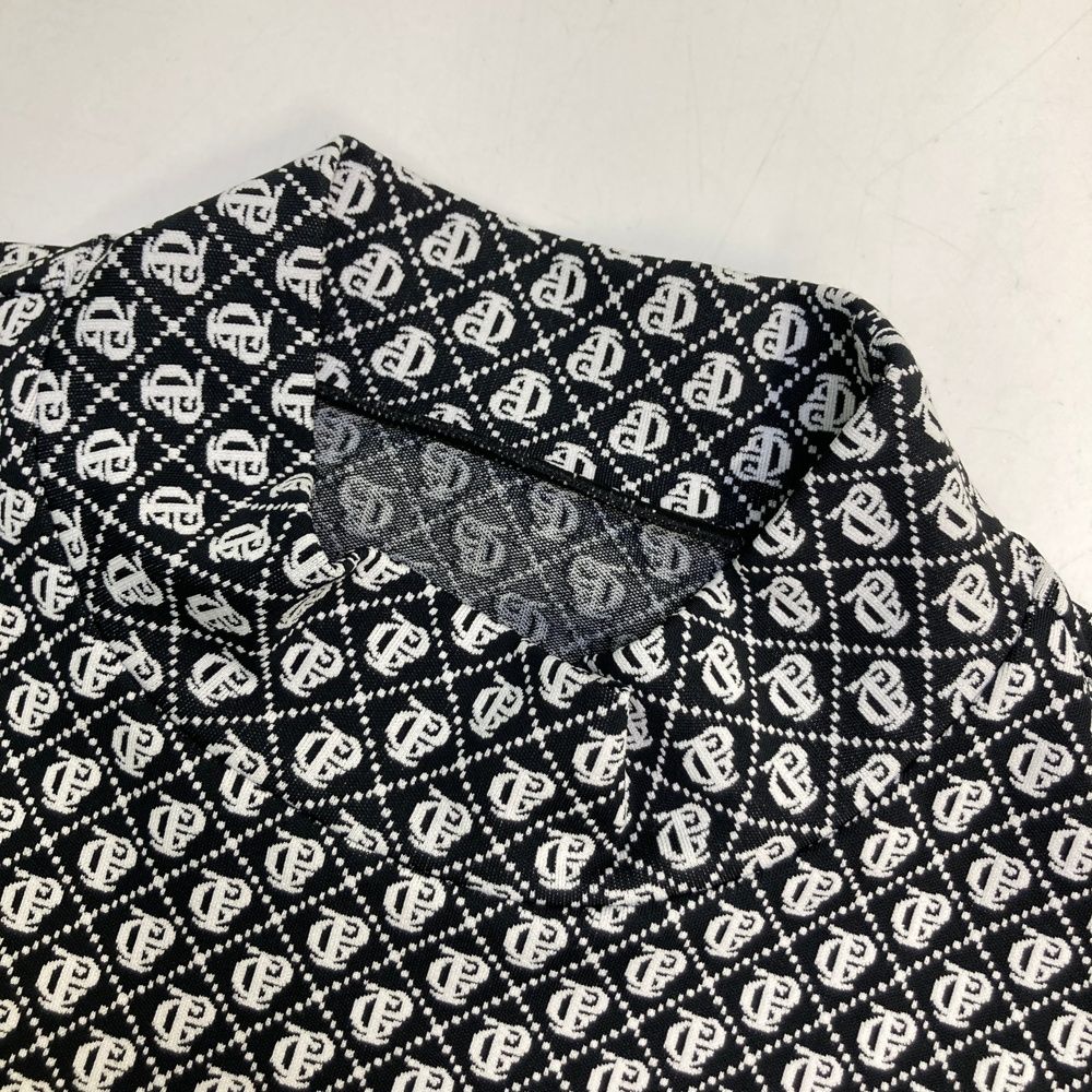 サイズ 4 PEARLY GATES パーリーゲイツ モデル ハイネック半袖 Tシャツ 総柄 ブラック系 ゴルフウェア メンズ ストスト