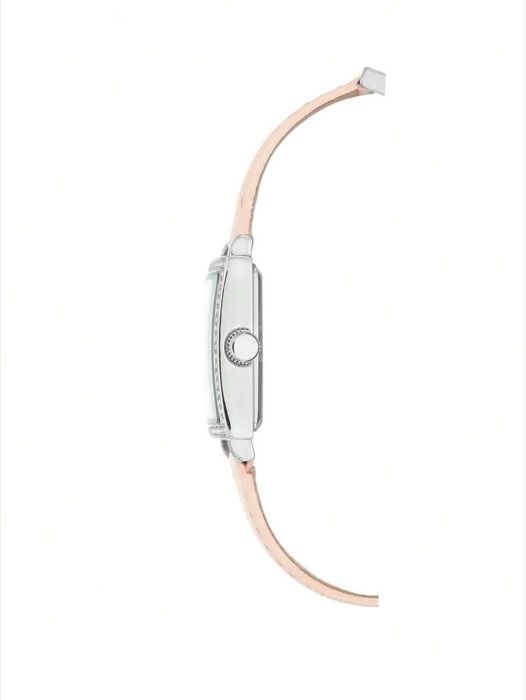 腕時計 レディース クォーツ 女性用 スワロフスキークリスタル アクセント シルバートーン-ライトピンクレザーストラップ