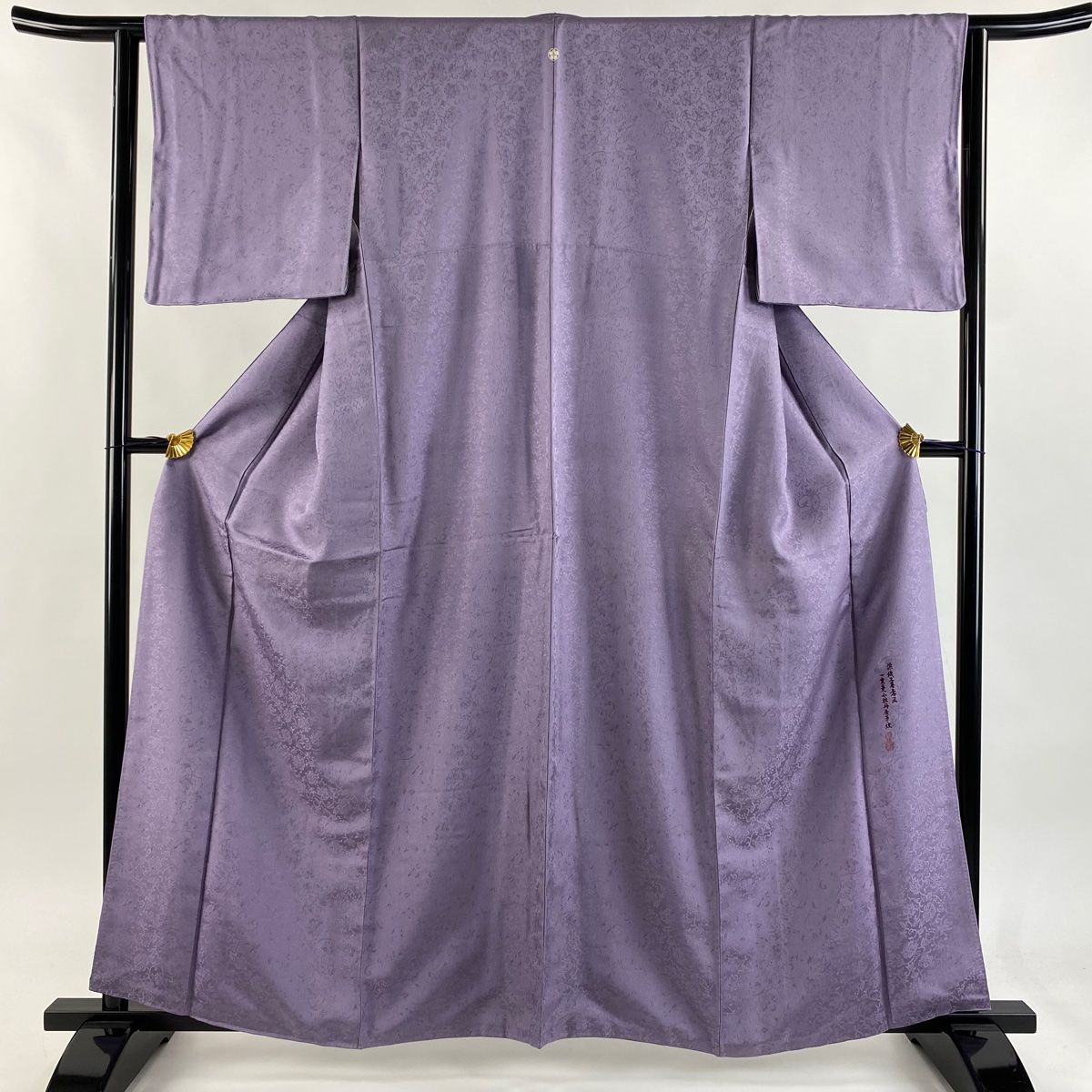 色無地 身丈160 cm 裄丈63 S 袷 落款 地紋 薄紫 正絹 秀品 一つ紋