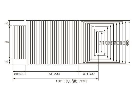 奥行き×幅:665×1301.5mm(リブ数:39本)