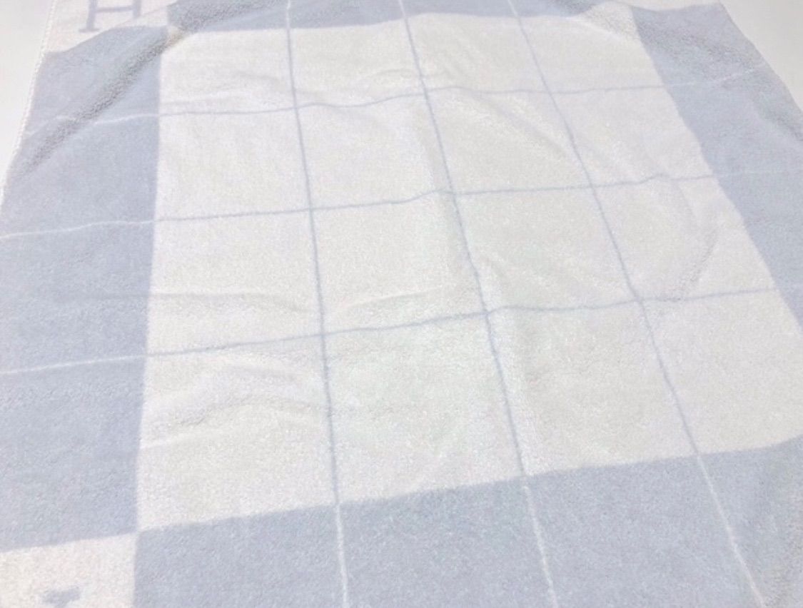 参考価格¥40 700 仏製 エルメス バスラップ アヴァロン Hロゴ おくるみ ベビータオル バスタオル コットン100% ブルー 2 A 48