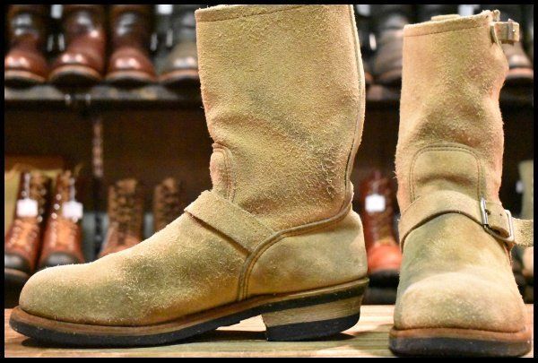 8.5 D PT 91刺繍 レッドウィング 8268 スエード エンジニア タン ラフアウト スチールトゥ ベージュ ブーツ redwing FI 358