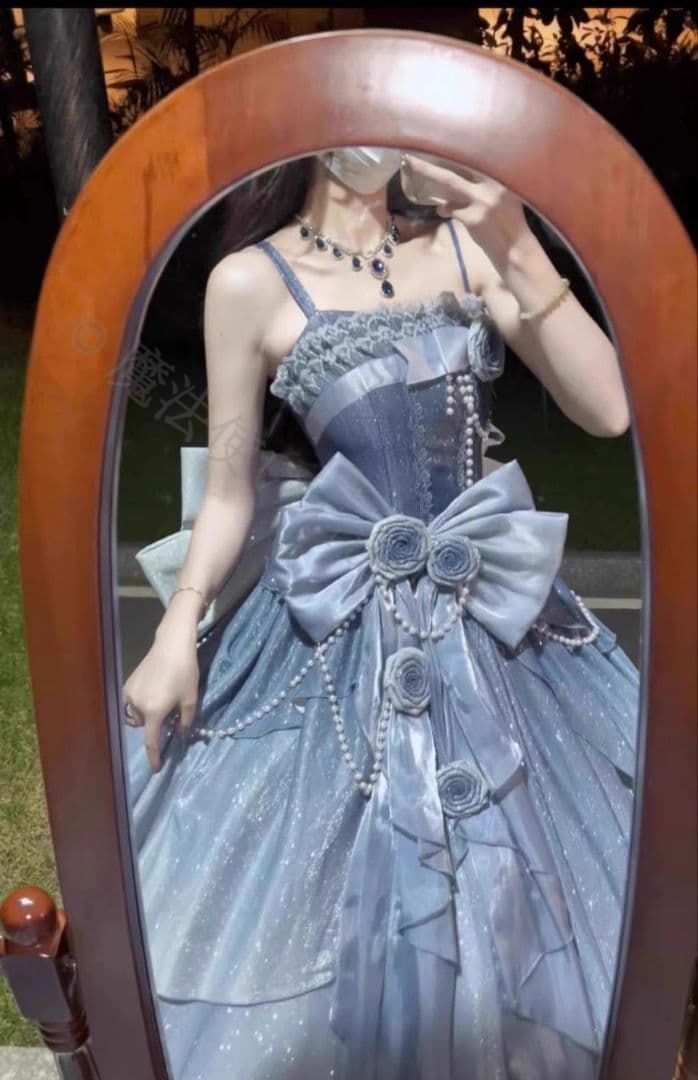 新年 用コスプレ衣装 夜空に咲く青薔薇の輝き 月光を纏うロイヤルブルードレス ゴスロリ