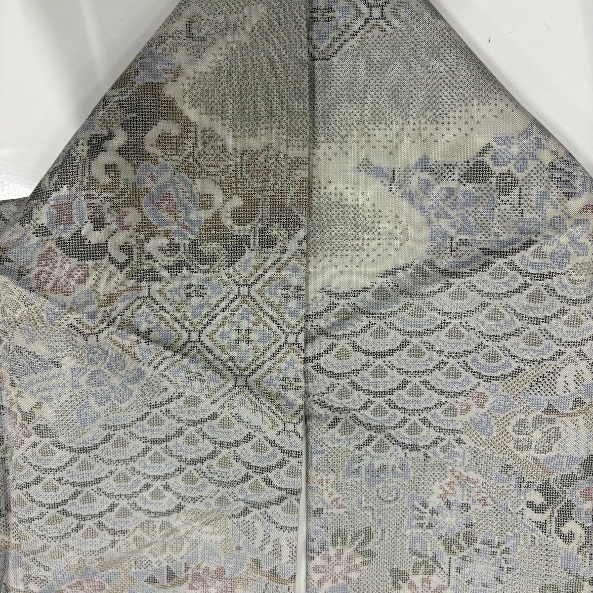 紬 身丈162 cm 裄丈64.5 M 袷 草花 雲文 灰緑 正絹